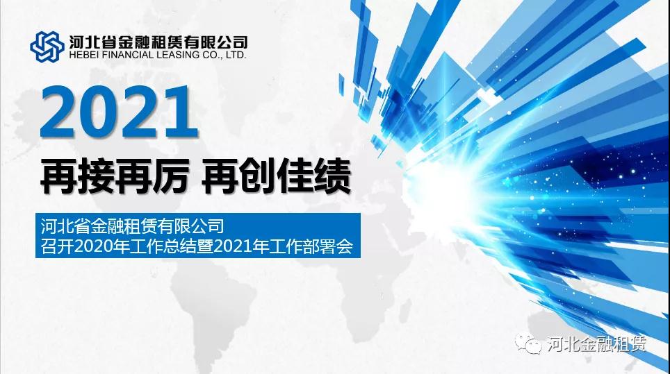 2月7日,河北省金融租賃有限公司(以下簡稱“河北金租”或“公司”)通過網(wǎng)絡視頻會議形式召開2020年工作總結暨2021年工作部署會,總結回顧公司2020年度經(jīng)營情況,研究部署2021年及下一階段工作目標。公司董事長徐敏俊、監(jiān)事長肖剛出席會議并講話,總裁楊應群代表公司經(jīng)營管理層作2020年度工作報告,公司班子成員及全體員工在主會場、3個分會場及遠程網(wǎng)絡會議端參會。