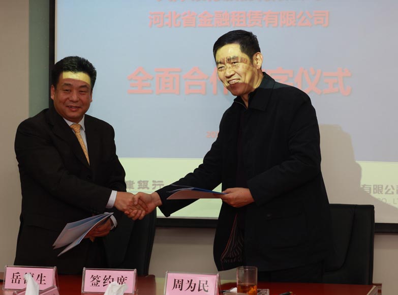 2011年11月15日,公司與天津銀行在河北省石家莊市河北建投大廈舉行了全面合作簽約儀式,周為民總裁與天津銀行副行長岳德生代表雙方簽署了《全面合作協(xié)議書》,天津銀行為公司先期提供同業(yè)授信額度4億元,定向用于開展協(xié)議約定項下業(yè)務(wù)。