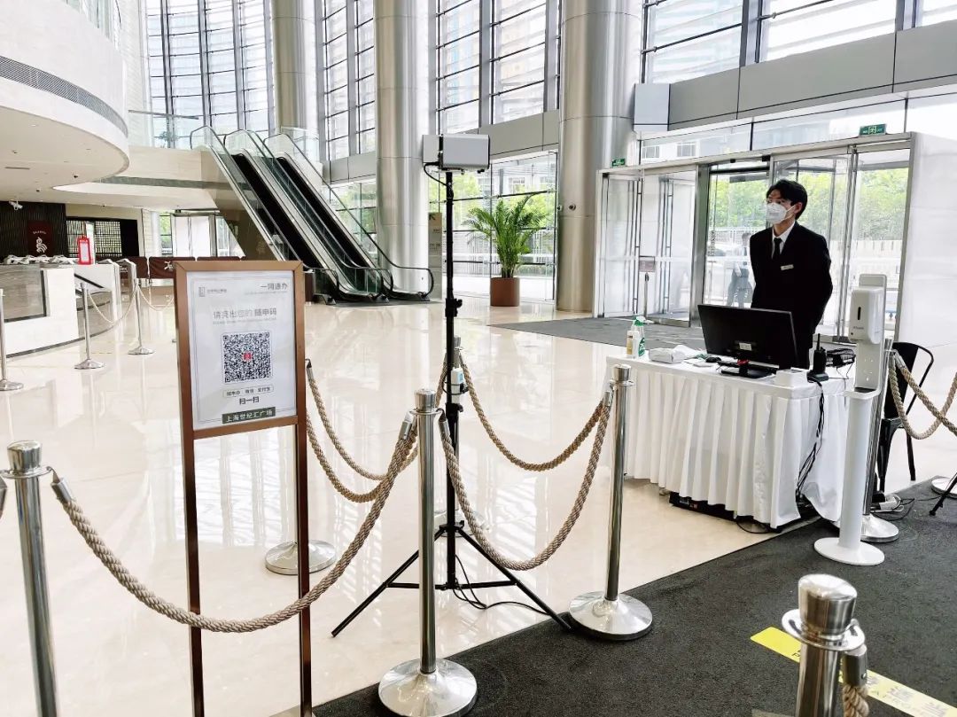 工區(qū)大樓布設健康核驗一體機“數字哨兵”,各人員有序掃碼核驗入場。